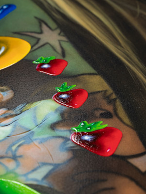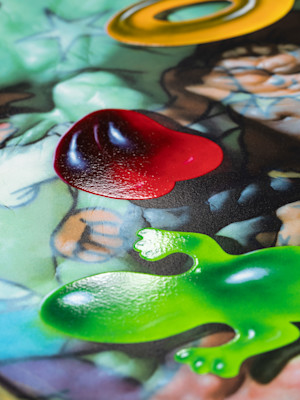A pitted surface was achieved through under and over curing the ink, this achieved a surface that was reminiscent of centuries old Dutch masters paintings on canvas.