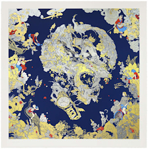 Detail of 24ct gold leaf, pure palladium leaf and spot varnish sparkle